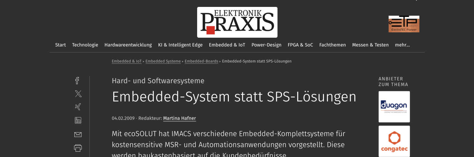 Die Automatisierungswelt wandelt sich: Embedded Systeme gewinnen zunehmend an Bedeutung gegenüber herkömmlichen SPS-Lösungen. Ein aktueller Fachartikel auf elektronikpraxis.de beleuchtet diesen Trend ausführlich und erklärt, wie Embedded Systeme in puncto Flexibilität, Leistungsfähigkeit und Integration neue Möglichkeiten eröffnen.