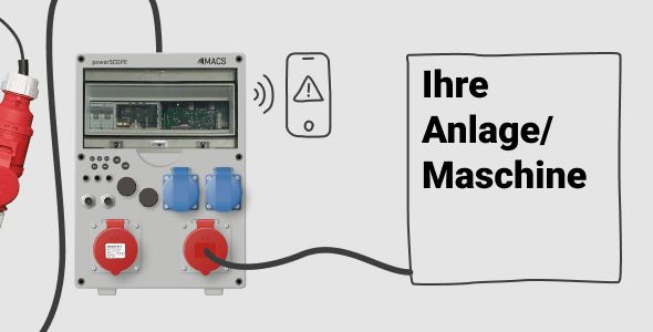 Einfügen des powerSCOPE in die Netzzuleitung der Anlage/Maschine (mit CEE-Stecker, bis 22 kW).